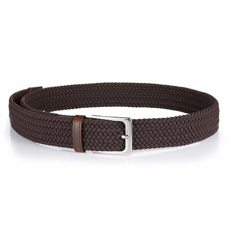 Gunsound Elastic Fabric Belt Unisex Braided Stretch Belt Braided Belt Stretchy Belt for Men and Women, dark brown