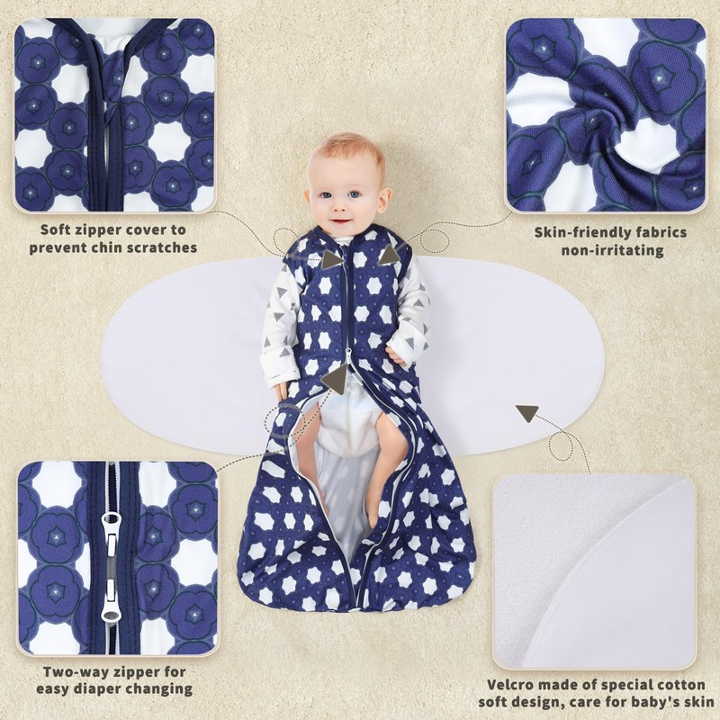 - Our swaddle wings are made of soft linkable new cotton fabric instead of the sharp velcro design of other products,Safer and more comfortable.The TOG rating is 0.5, and closing the wings TOG can be upgraded to TOG 1.0, providing proper comfort for mild seasons or climates.