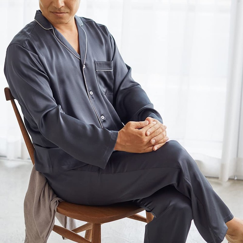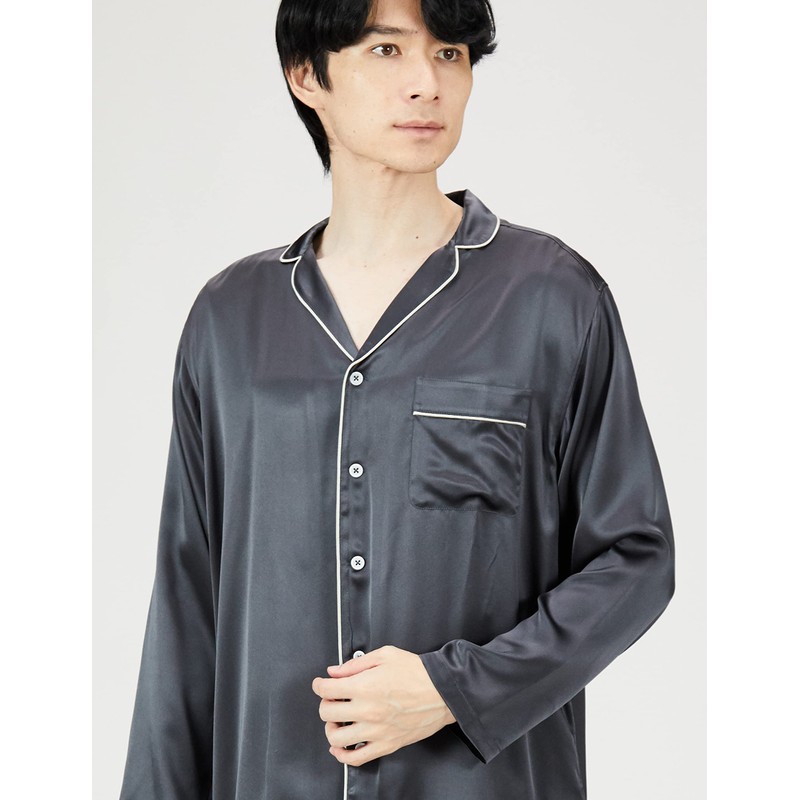 Gunze KaiminNavi Men's Pajamas, Pajamas, 100% Silk, Long Sleeve Pants, Silk Satin, Chaco - Lugre-_New Model