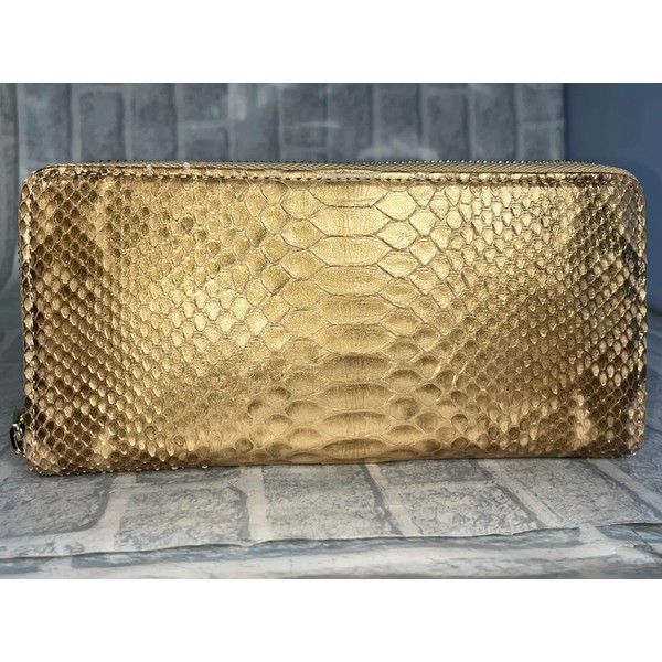 This long wallet is made of genuine Python leather with a round zipper and comes with a card case.