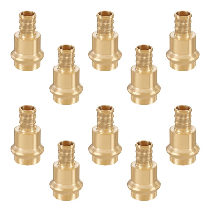 GUOFIS 1/2Inch PEX Copper Press Fittings,1/2" Press X 1/2" PEX Crimp Coupling Adapter for Copper and Pex Pipe Connection(10Pack,LF Brass Material)(PEX1807344)