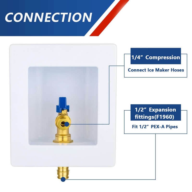 - Long-Lasting:The Ice Maker Box has pre-installed 1/4 turn lead-free brass valve,complies with NSF 61-G Requirements(Portable Water Standard).