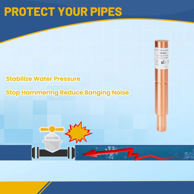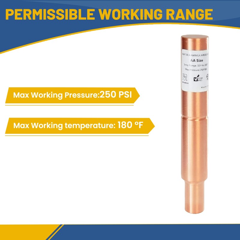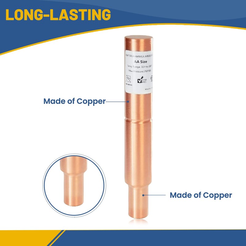 - Long-Lasting:The water hammer arrestor is made of lead-free brass and copper, that resists corrosion, rust, and high temperature. And compliant with the CUPC and NSF listed.