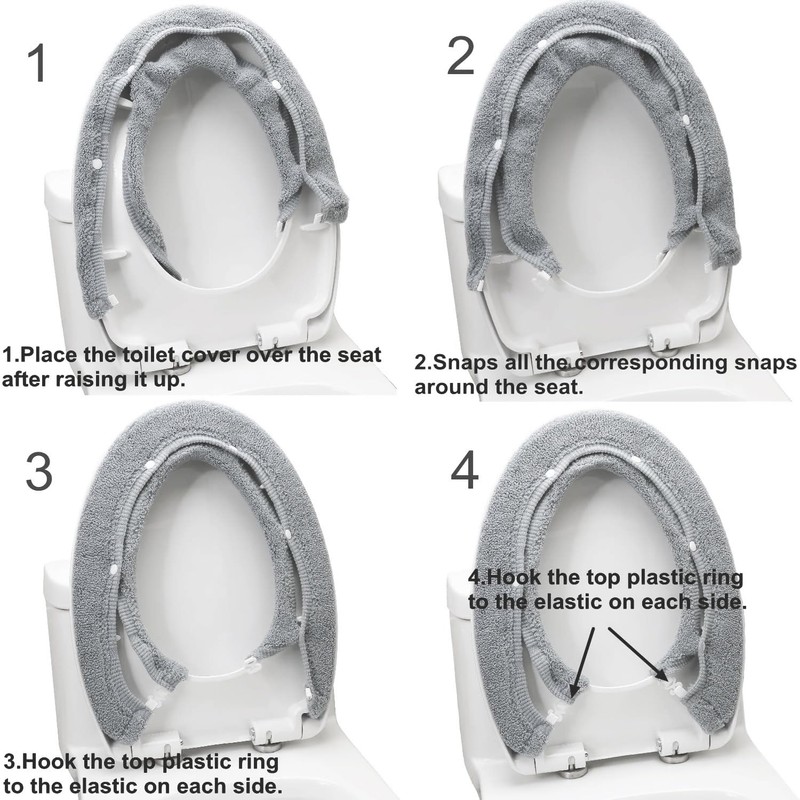 - EASY TO INSTALL AND WASH - Installing this cover is a breeze! It simply slides over the toilet seat and can be washed in the washing machine for easy maintenance. The cover comes with a ring that holds it in place under the toilet seat for stability.