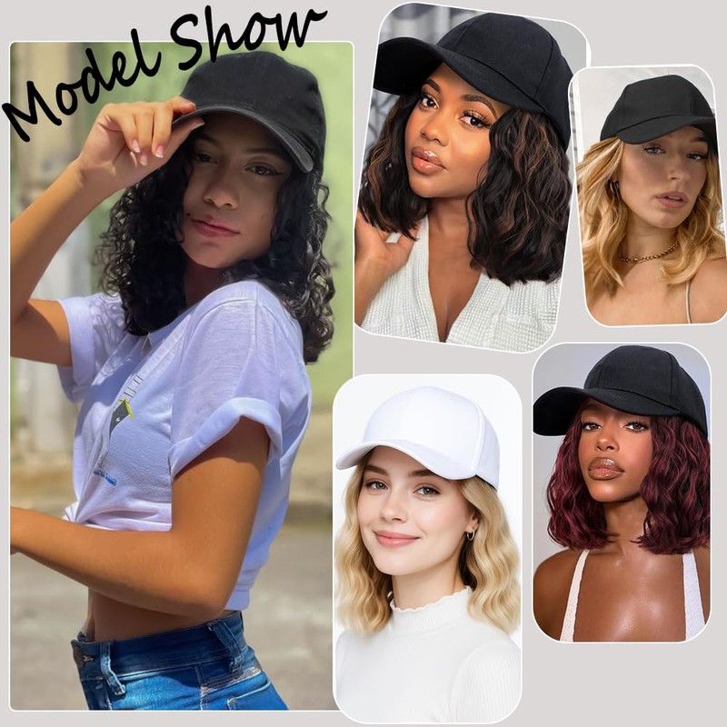 - Material: The short curly wave baseball cap wig are made from high-quality synthetic fibers, the hair is soft, thick and smooth. The baseball cap is not easy to deform.Wearing it also get some volume,especially on the top to make your face look smaller