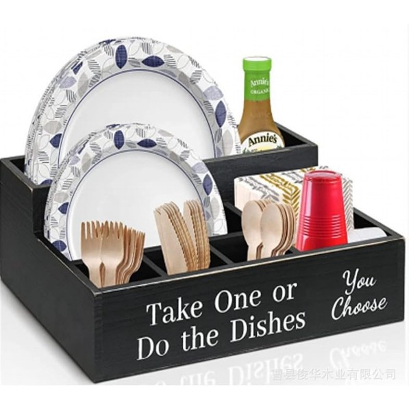 - Large Capacity: This cutlery organizer has 6 compartments in which you can store disposable tableware, spoons, forks, knives, napkins and condiments. Separate compartments can be used to keep items organized. The open design of the paper tray holder also makes it easier to organize dishes or condiments