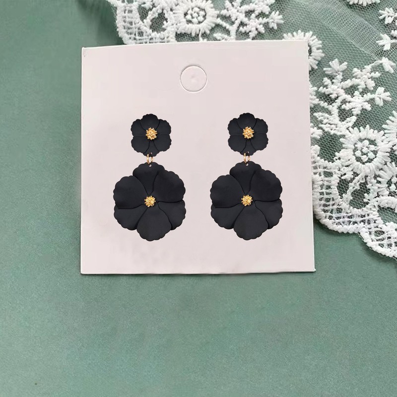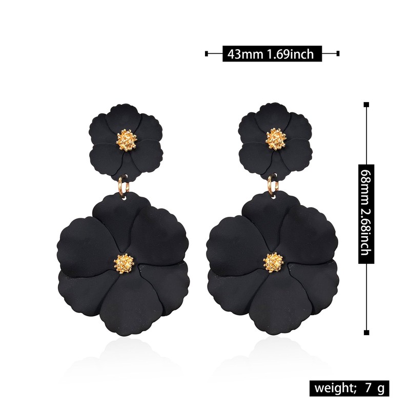 GUOXIAOMEI White Summer Flower Floral Dangle Earrings Boho 2 Layered Floral Petal Drop Earrings Statement Stud Earring for Women jewelry (Black)