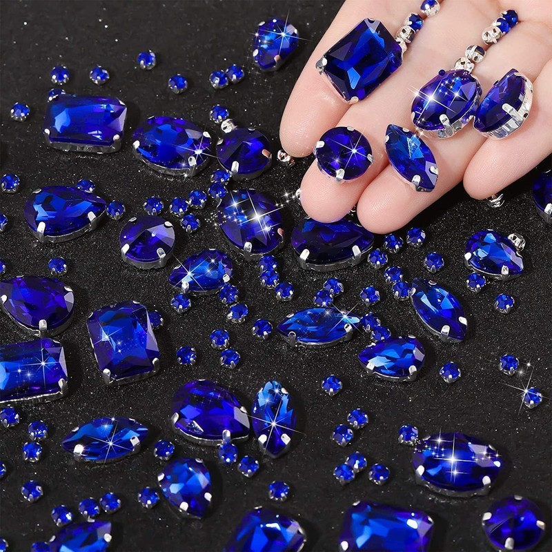 GUOYOU 186 Pieces AB Sewing Gems Six Styles of Craft Rhinestones Metal Claw-Set Sewing Rhinestones Suitable Jewels for Crafting DIY Clothes Jewelry Handicrafts Clothing Shoes and Hats (Sky Blue)