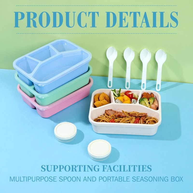 - Four-piece set contains four different color lunch boxes, with four sporks, two seasoning boxes. Meet the different needs that you work with every day.