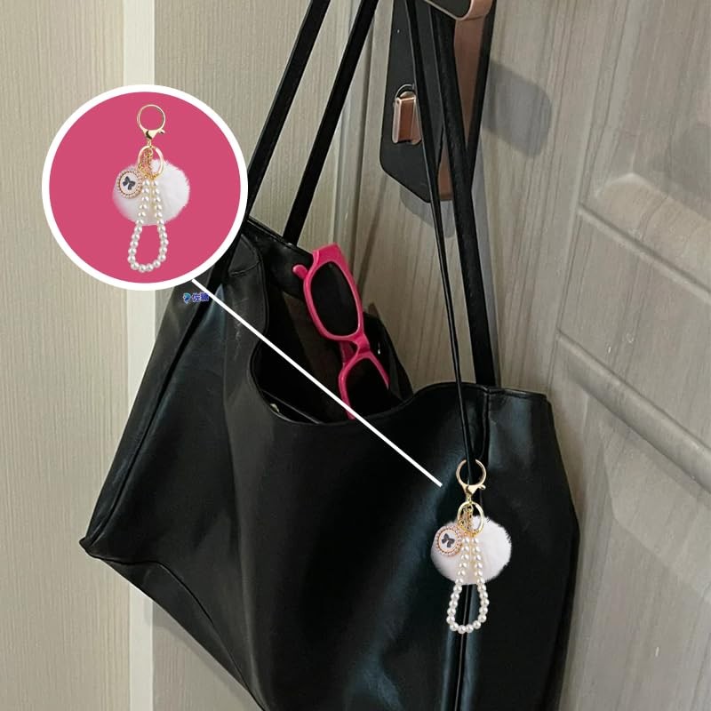 - Application of Pom Pom Keyrings for Women Girls: The pearl key chain wristlet cannot only be used as a bag or key charm, but also as a decoration for bags, handbags, mobile phones and so on, pom poms keychains for car keys, cute fluffy plush keychain for bag handbag purse phone, car wristlet fluffy keyrings for women car keys