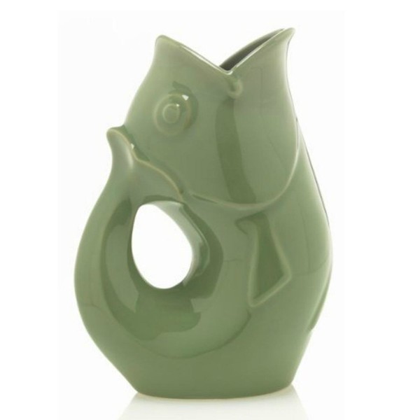 Beautiful Serving Pitcher. Produces whimsical gurgling sound. Crafted of durable stoneware. Capacity 42 oz. Size 9.5"H, 4"W, 6.75"L Gurgles with or without ice. Perfectly versatile for fresh cut flowers. Make a great gift!