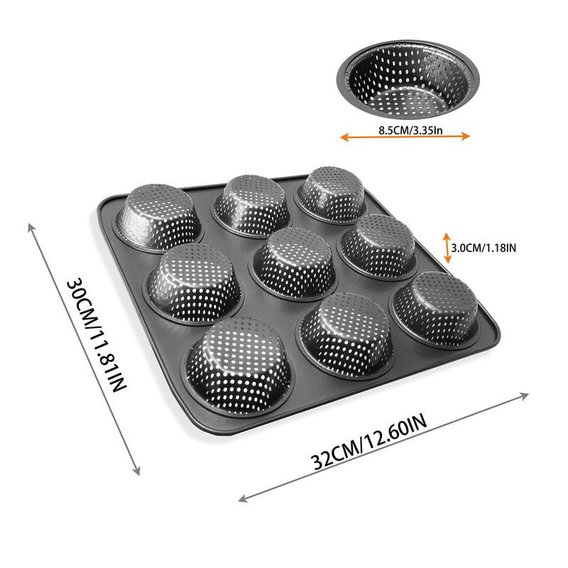 Feature: Each cup measures approximately 8.5 cm in diameter, providing ample space for your favourite recipes to rise beautifully. The dark-coloured surface promotes even browning, creating that coveted golden finish on your baked goods. Perfect for both home bakers and culinary enthusiasts, this durable muffin tin makes an essential addition to your kitchen arsenal.