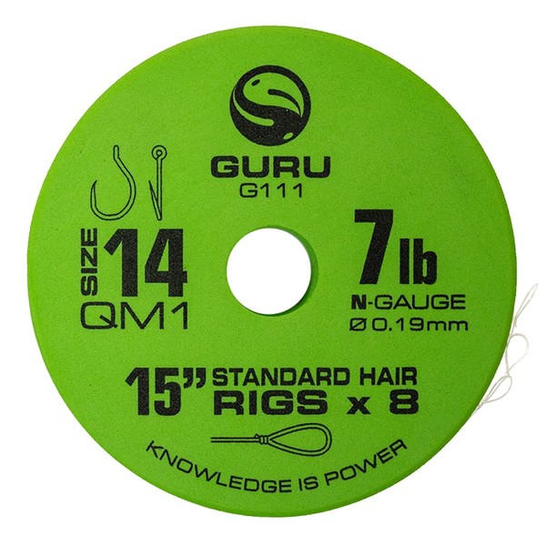 Guru QM1 Standard Hair Rigs 15" 8 Pack (Size 14, 7lbs)