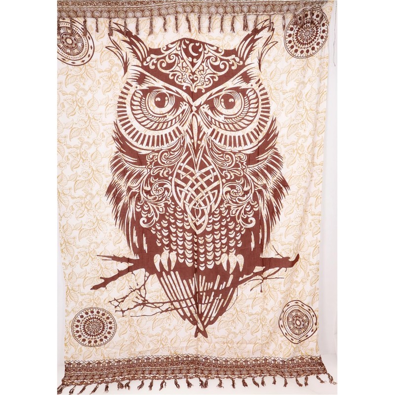 GURU SHOP Bali Batik Sarong Dress, Wrap Skirt, Sarong, Beach Cloth, Wall Towel, Men/Women, Blue, Synthetic, Size: One Size, Owl/brown, Unit size