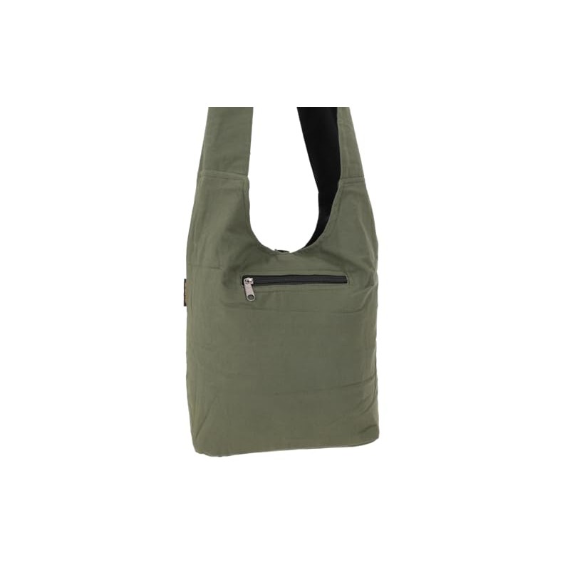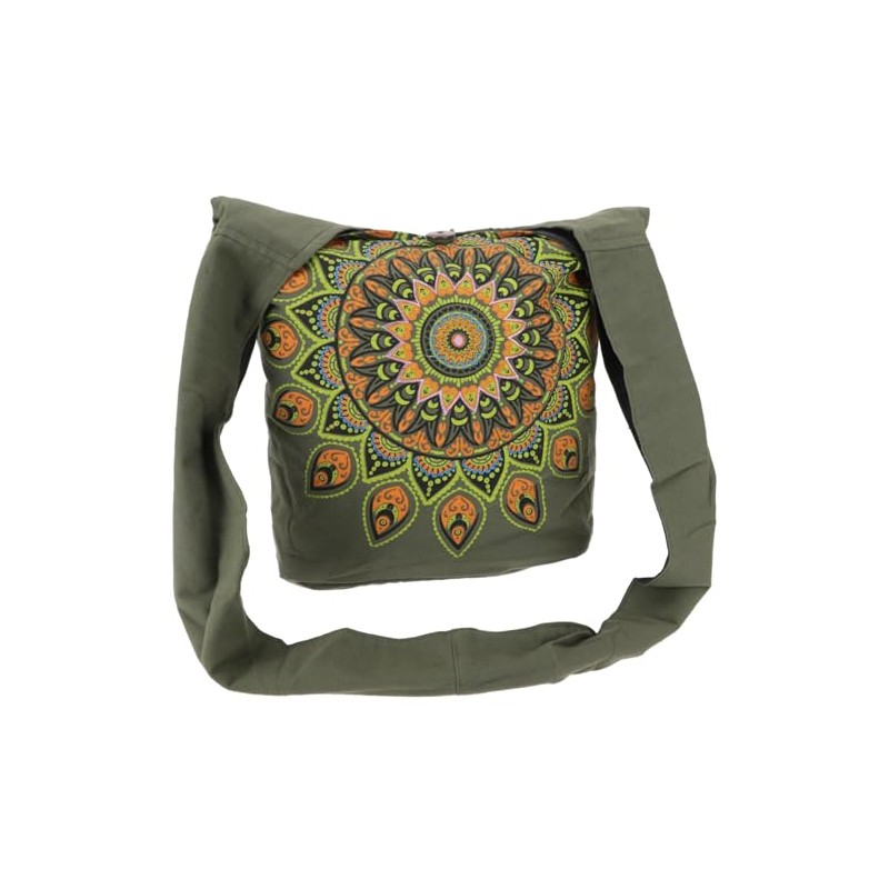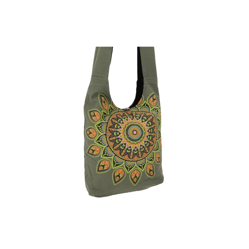 GURU SHOP Embroidered Boho Bag, Shoulder Bag with Mandala, Nepal Bag - Black/Turquoise, Unisex - Adult, 33 x 37 x 13 cm, Olive Green/Lemon, Unit size