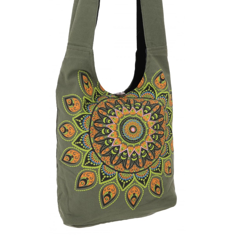- Beautiful cotton shoulder bag with a back zip compartment and a zip in the spacious main compartment