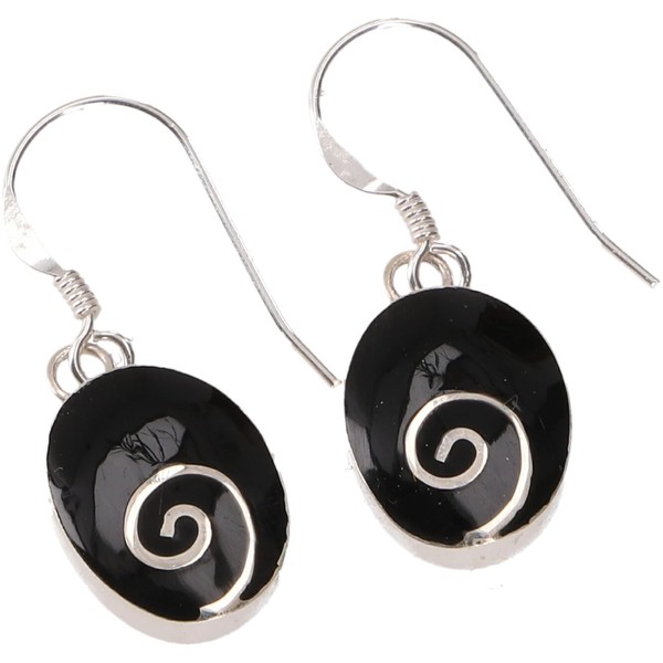 GURU SHOP Red Oval Ethnic Silver Spiral Earrings