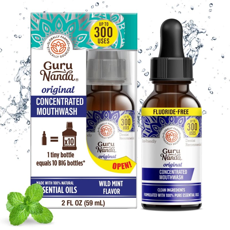 GuruNanda Holistic Natural Mouthwash 2 fl oz Eco Friendly Teeth Whitening Fresh Breath