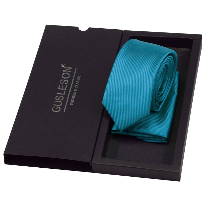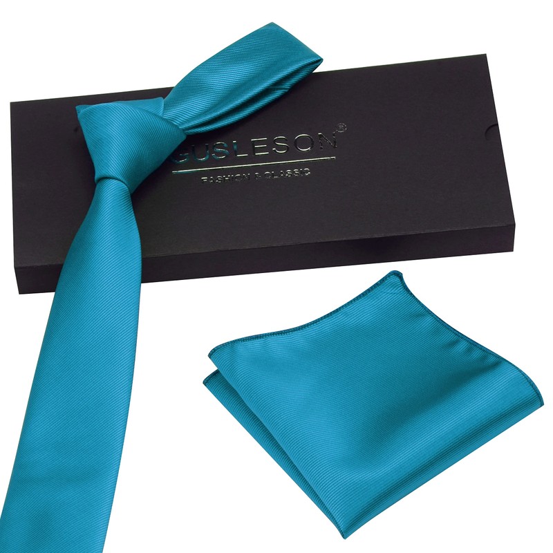 GUSLESON - Conjunto de corbata y pañuelo de 2.4 pulgadas para hombre, Azul Turquesa, general