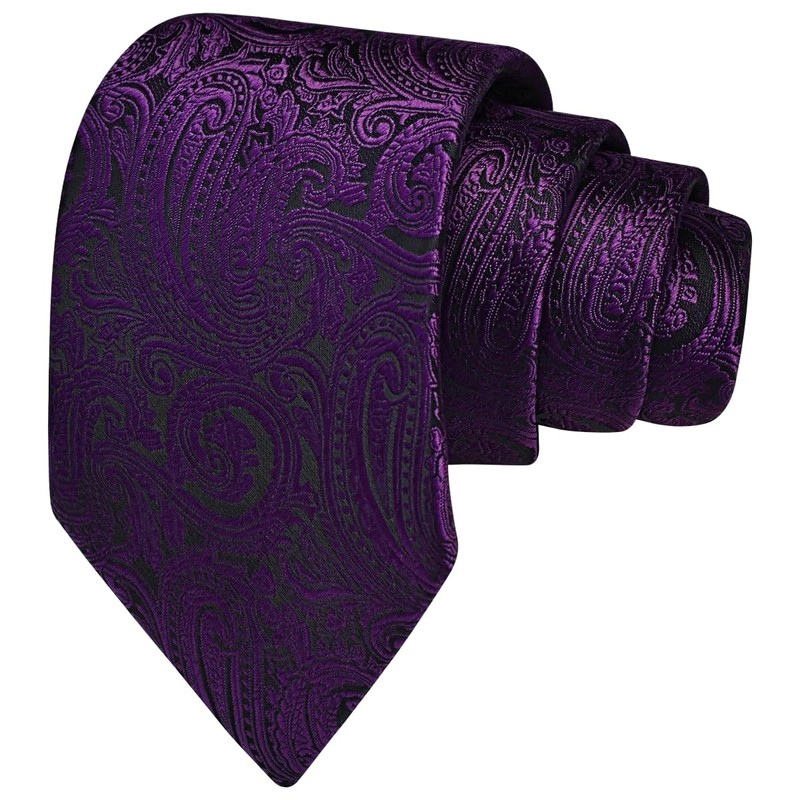 GUSLESON Mens Dark Purple Tie for Wedding Solid Silk Paisley Necktie Pocket Square Cufflinks and Lapel Pin Brooch Set (6103-23)