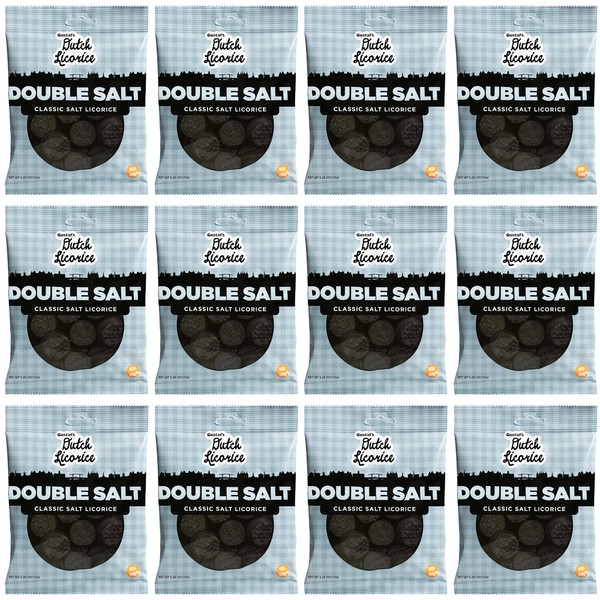 Gustaf's Dutch Licorice Double Salt Coins - 12 Pack of 5.2oz Bags - Salted Black Licorice Coins - Dutch Candy from Netherlands - Salty Black Liquorice Treats