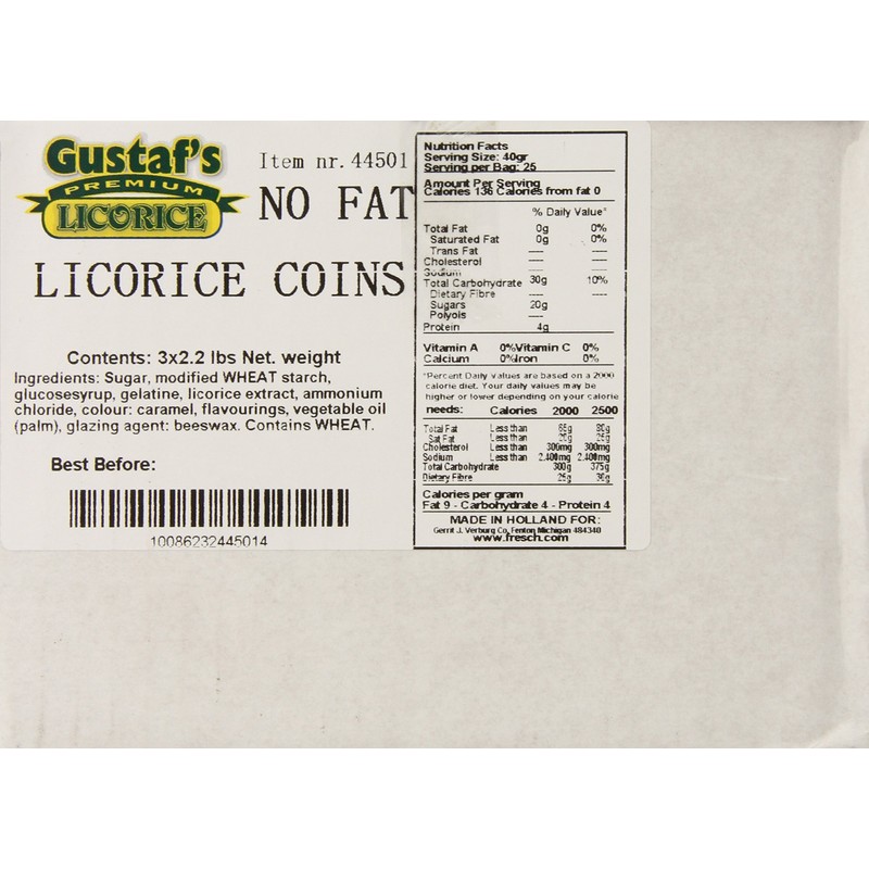 Gustaf’s no fat licorice coins, 2.2-Pound Bags (Pack of 3)