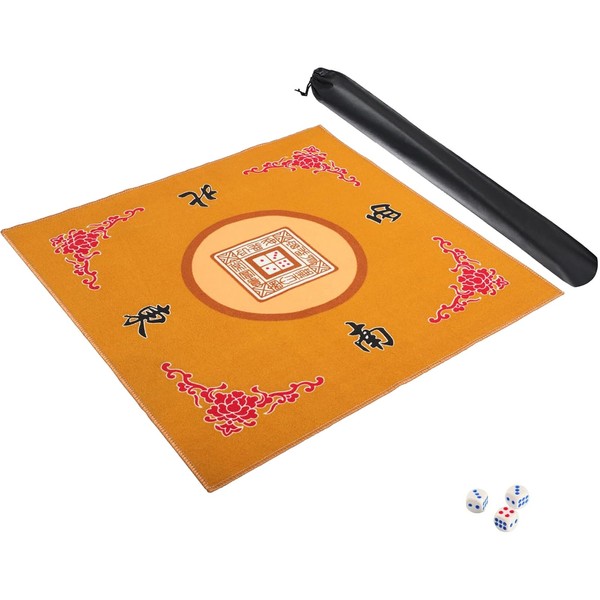 GUSTARIA Mahjong Mat with 3 Dice, Mahjong Table Mat for Poker, Card Games, Board & Tile Games, Anti Slip and Noise Reduction Table Cover (Yellow, 31.5 inches)