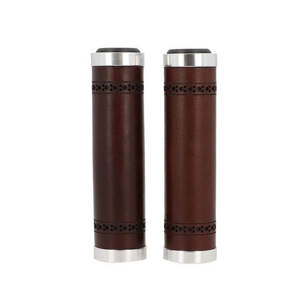 Gusti Sonny C. Genuine Leather Handlebar Grip Bicycle Handle Brown Leather Metal Ring Silver Smooth