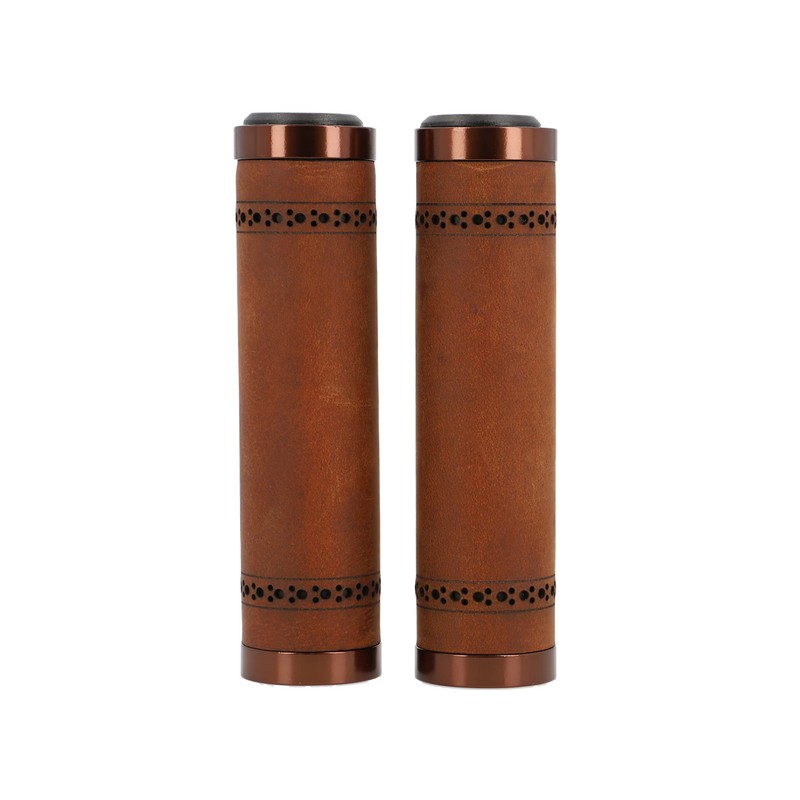 Gusti Sonny C. Genuine Leather Handlebar Grip Bicycle Handle Brown Leather Metal Ring