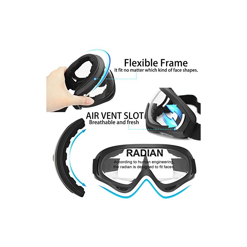 - With adjustable elastic band and comfortable foam liners on the frame, and also can be used with helmet.
