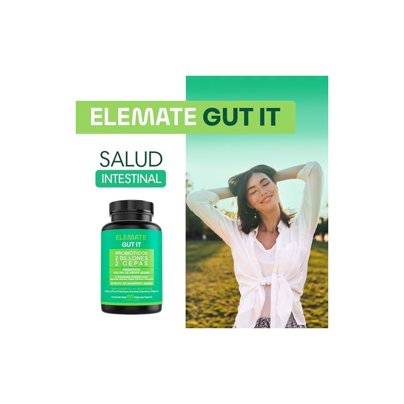 🌟 ⭐ Gut it Probiotic | Suplemento Natural | Probióticos, Prebióticos, Enzimas Digestivas, Citrato de Magnesio | 60 Cap Veganas | Apoyo Digestivo | Elemate ⭐ 🌟