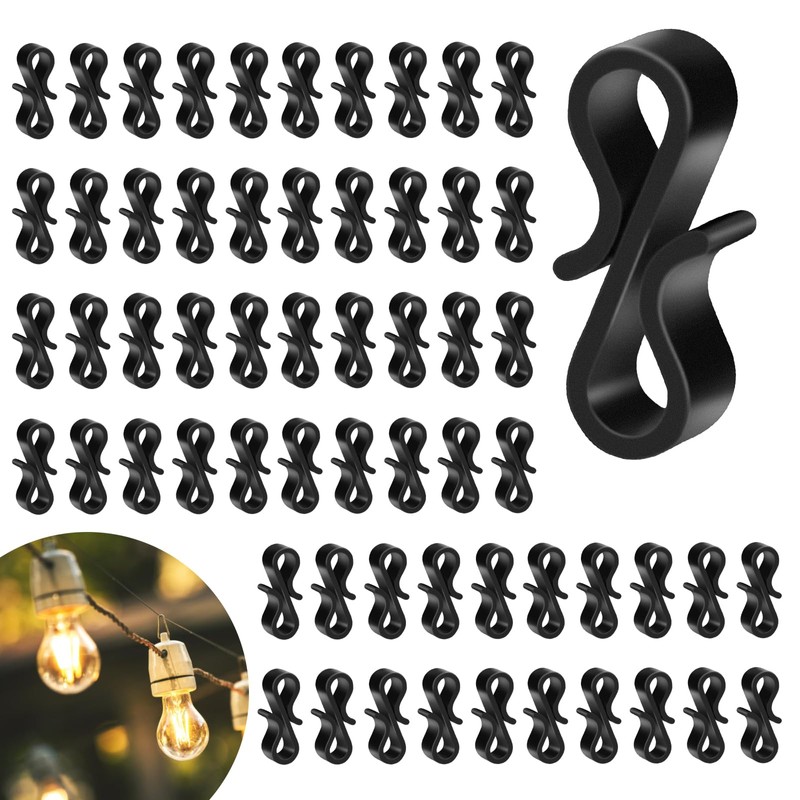 Gutter Hooks for Outdoor Lights, 120 Pcs Mini Plastic S Gutter Clips for Hanging Outside String Lights, Icicle Fairy Lights, Christmas Tree Decorations-Black