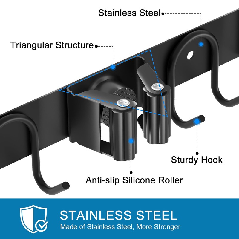 - Premium Stainless Steel Broom Holder: Built with ultra-durable, rust-proof stainless steel for exceptional strength and longevity. Resists damage and thrives in damp environments, no breakage worries