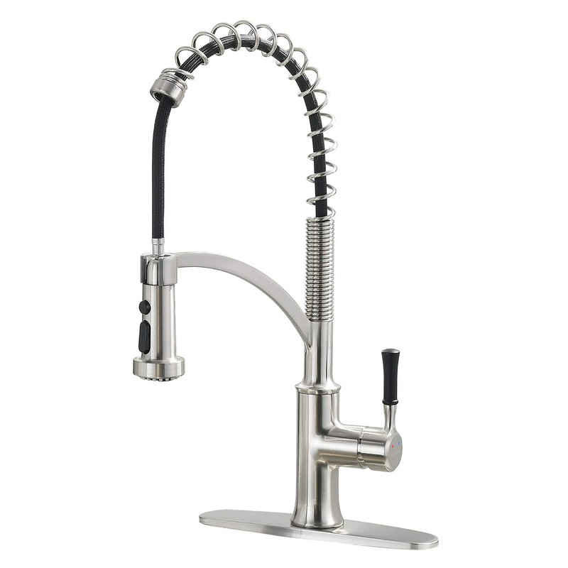 GUUKAR Kitchen Faucet with Pull Down Sprayer, Single Handle Brushed Nickel High Arc Commercial Farmhouse Kitchen Sink Faucet with Deck Plate