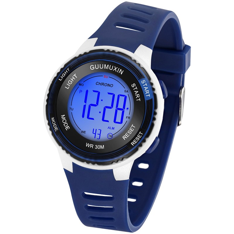GUUMUXIN Children's Digital Watch, Children's Sports Watch with 7 Colour Indicator Light, Acrylic Watch Screen, 3 ATM Waterproof, Band Watch for Girls and Boys, darkblue, Strap.