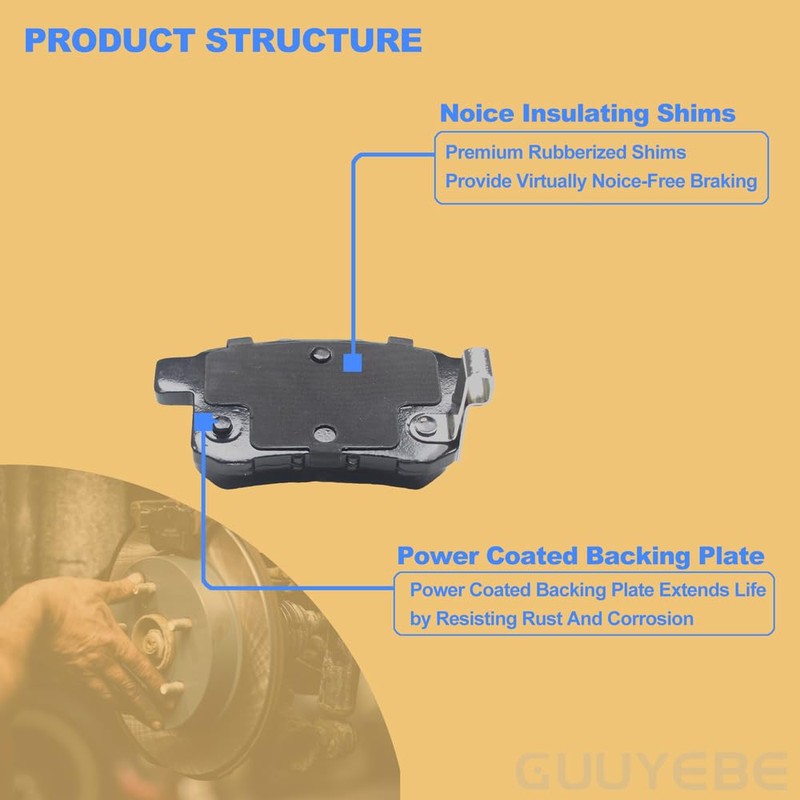 - GuuYebe Rear Brake Pads Kit includes: 4 PCS x Semi Metallic Rear Brake Pads