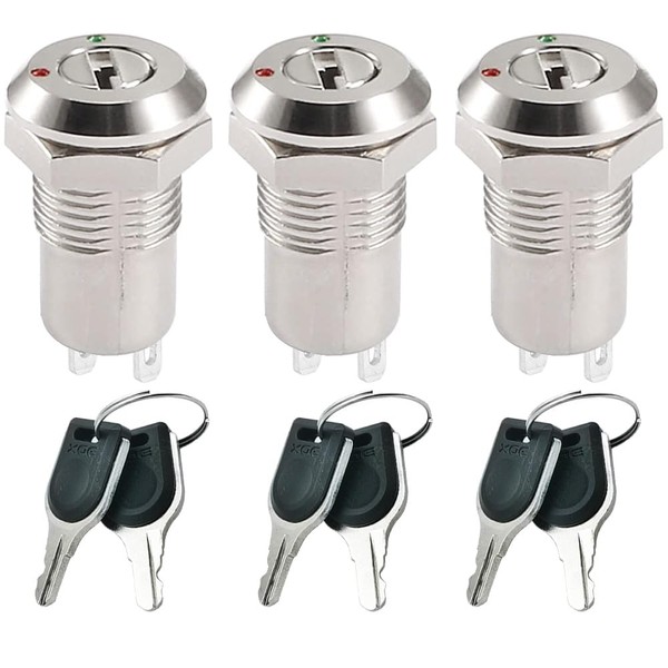 GUUZI 3 Pack 12mm Metal Key Lock Latch Switch On/Off Key Switch Lock 0-250V Continuous Key Switch