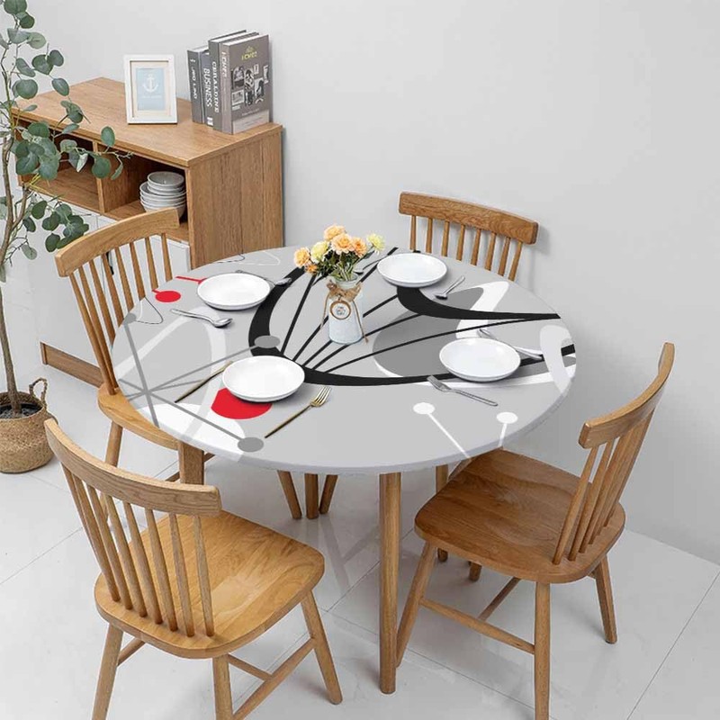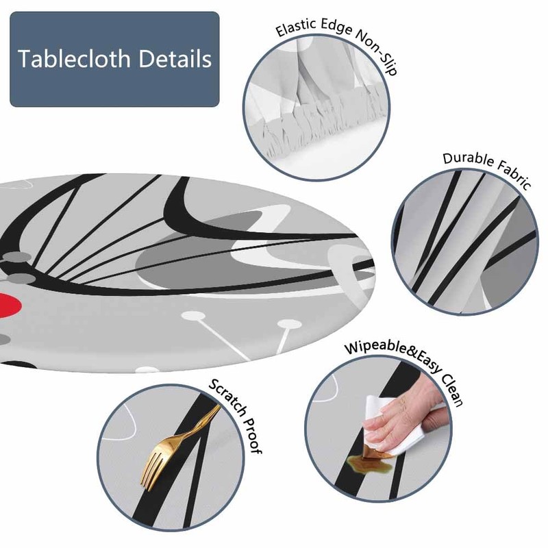 - 【Perfect Fit Size】:Atomic Pattern tablecloth fits 40-44 inch round table. Elastic edges make the polyester tablecloth to fit snugly and won't move or fall off. Please measure your table size before purchasing.