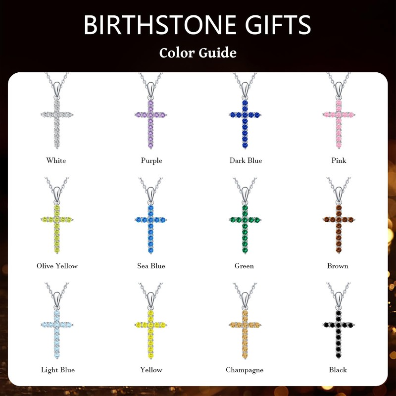 GUYOICHT 925 Sterling Silver Cubic Zirconia Cross Pendant Necklace for Women (style 6-Light Blue)