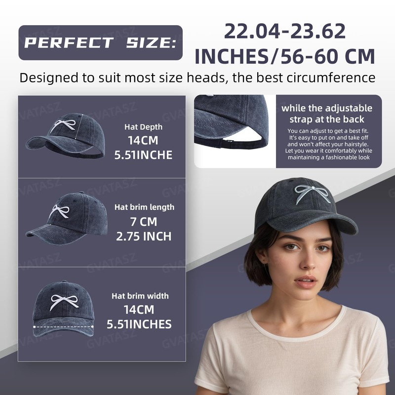 - Cute Bow Embroidery Design: Elevate your look with our chic baseball cap featuring a delicate bow embroidery. This bow-tie hat is simple and generous appearance, stands out with its adjustable design, wide brim, and UV protection. It embodies a sporty style with a touch of Y2K aesthetic, making it a cute and trendy accessory for the summer season, adding a stylish touch to any ensemble.