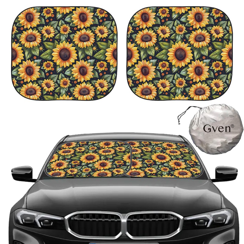 Gven Windshield Sun Shade 2pcs with Bonus Car Sunshade for Front Window Shades 2025 Technology Reflect UV and Heat Sun Visor Automotive Interior Sun Protection (Sunflower, M)