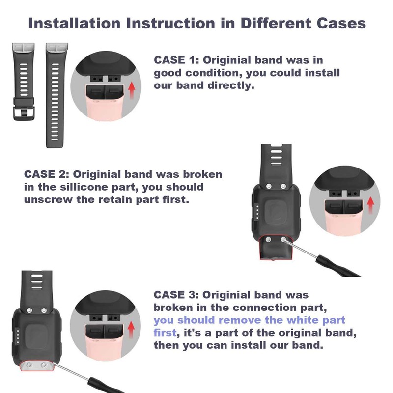 - [Perfect Fit for Forerunner 35] This replacement silicone band ONLY compatible with Garmin Forerunner 35 Smart Watch. Not for any other models. Note, please install the band according to the instructions in the manual, otherwise you may think that the band is not suitable. (The Watch is not included)