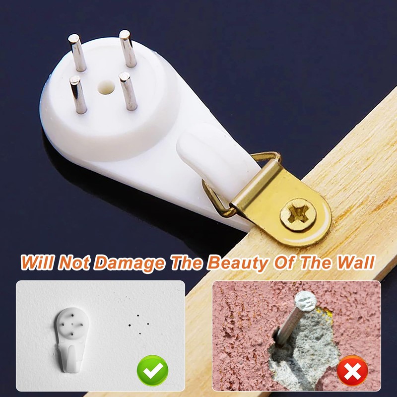 - Stable structure, safe hanging: Picture frame fixation. The structural design fits snugly and firmly to the wall part and ensures a stable load capacity on different wall materials. The connection between the hook and the picture frame is firm and easy to use, providing a safe and reliable hanging guarantee for art paintings and picture frames, whether they are stationary or occasionally disturbed by external forces.