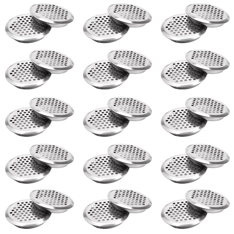 GVPOELR Pack of 30 Stainless Steel Ventilation Grille, 35 mm Stainless Steel Ventilation Hole with Round Mesh Net, Round Ventilation Grille, Stainless Steel Ventilation Hole, for Cupboard, Bookcase,