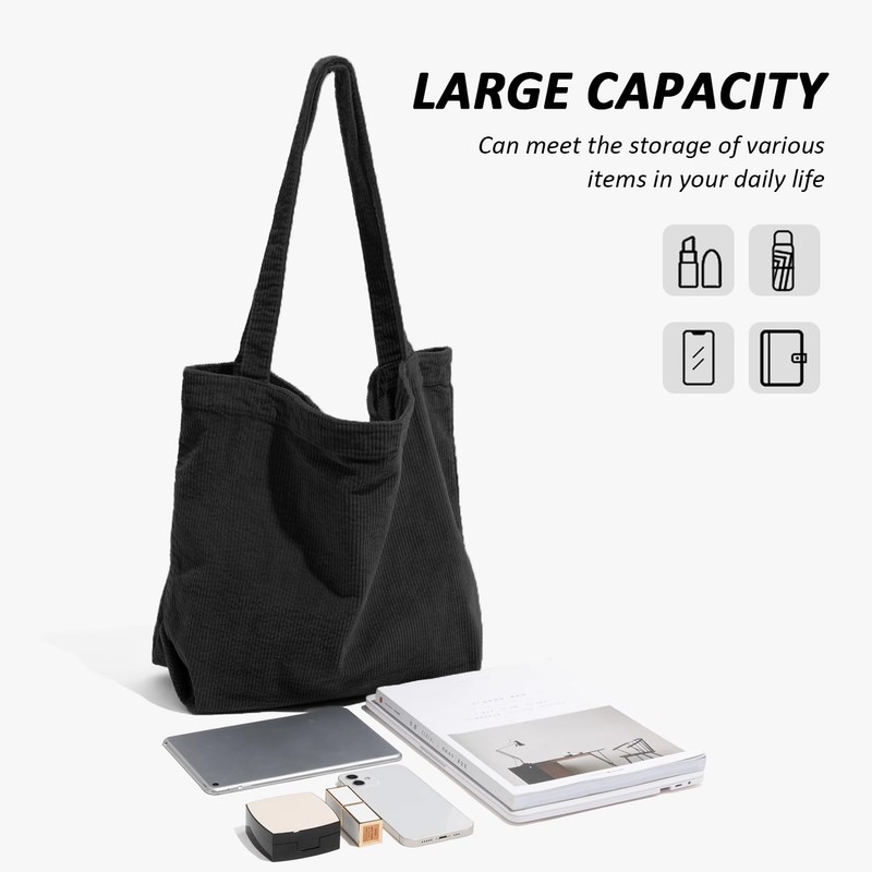 - 【Large Capacity, Light Weight】Super large capacity allows you to store various items in your daily life, and a built-in pocket can store valuables without fear of losing. This corduroy tote has a total weight of approximately 230g and is foldable for easy carrying and storage.