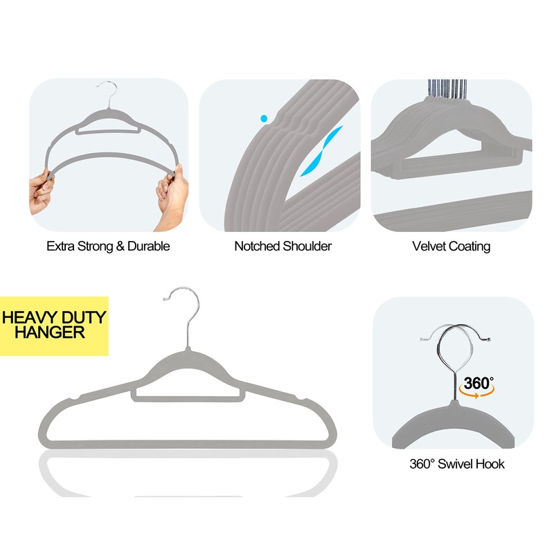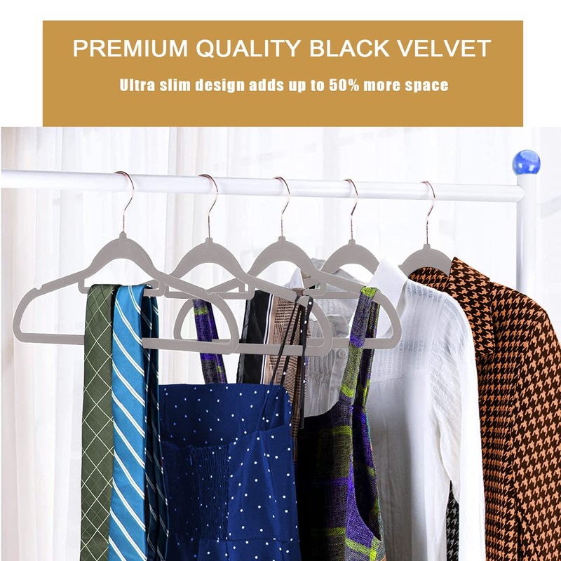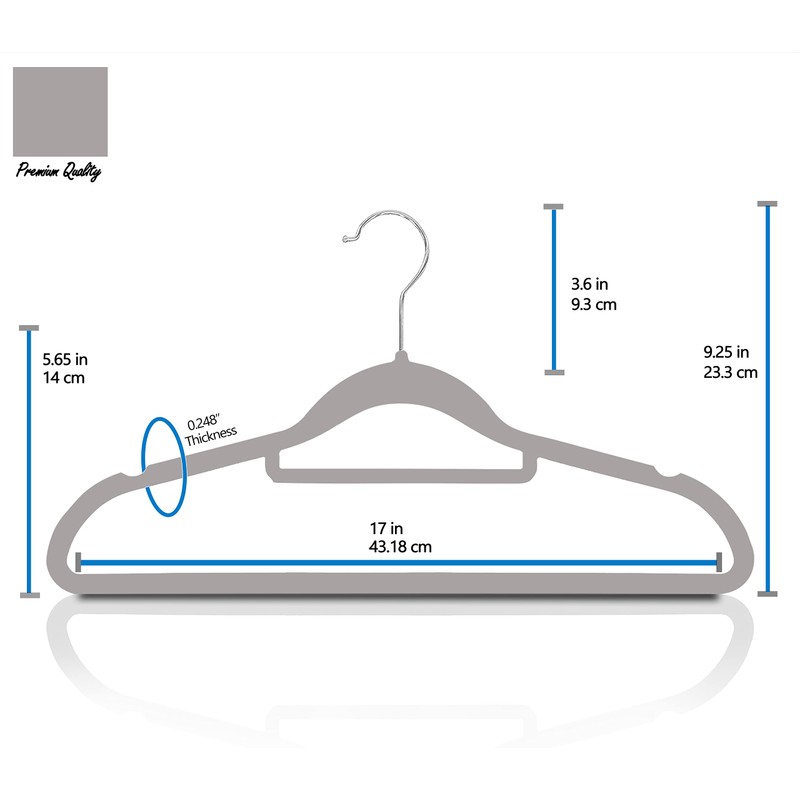 - 【Velvet Hanger 50 Pack】: These elegant velvet hangers add class to your wardrobe with each hanger measuring 44.5*23.5*0.5 cm making it oddly pleasing to the eyes. Velvet non slip hangers having 360 degree swivel, shiny hooks and notched shoulders that will make hanging clothes a simple pleasure.