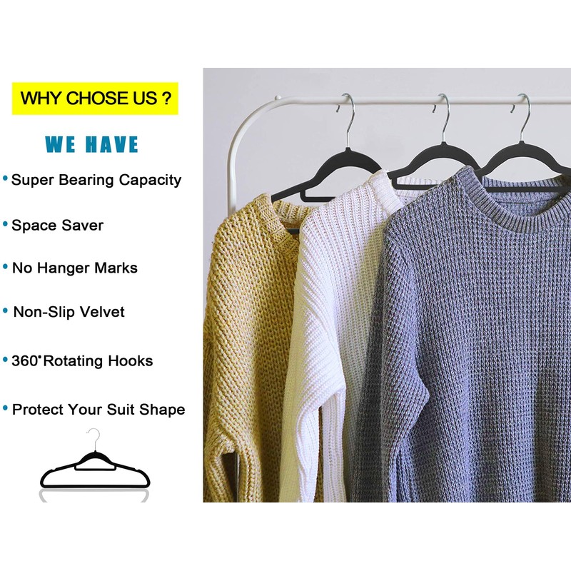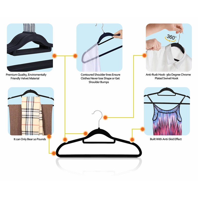 - 【High Quality】: With a thickness of only 0.5 cm, these slim hangers save space in Closet. Ultra-thin construction allows you to hang ties, shirts and jackets at once on one hanger to keep your closet organized in less space having 360 degree Swivel Hook rotate feature.