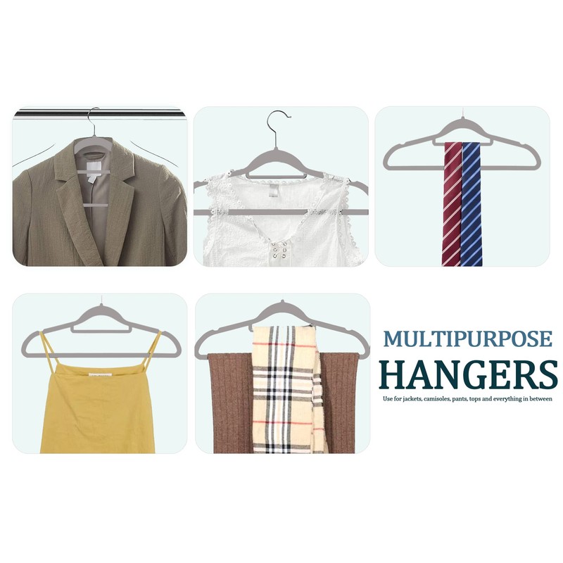 - 【Anti Slip】: The velvet coated surface of the hangers keeps your suits, pants, and delicate blouses from falling or sagging. This Set of non-slip hangers are gentle and having non-slip velvet surface holds on to clothes tighter than you do, so that nothing, not even a silk blouse slips off. It's great for your tank tops, dress, bars, tie, belts, nightgowns, shawls, skirts overalls tightly without slip.