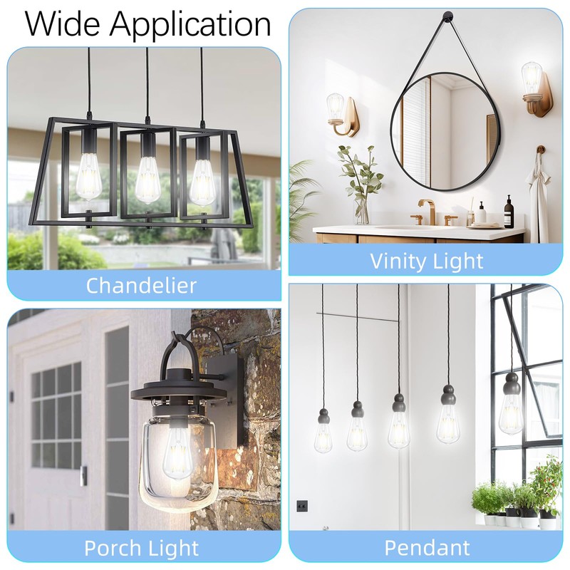 - Versatile and Easy to Use: Our E26 Edison bulb fits standard medium-base fixtures and is ready to use. Perfect for pendant lights, chandeliers, vanity fixtures, wall lanterns, floor lamps, and table lamps.