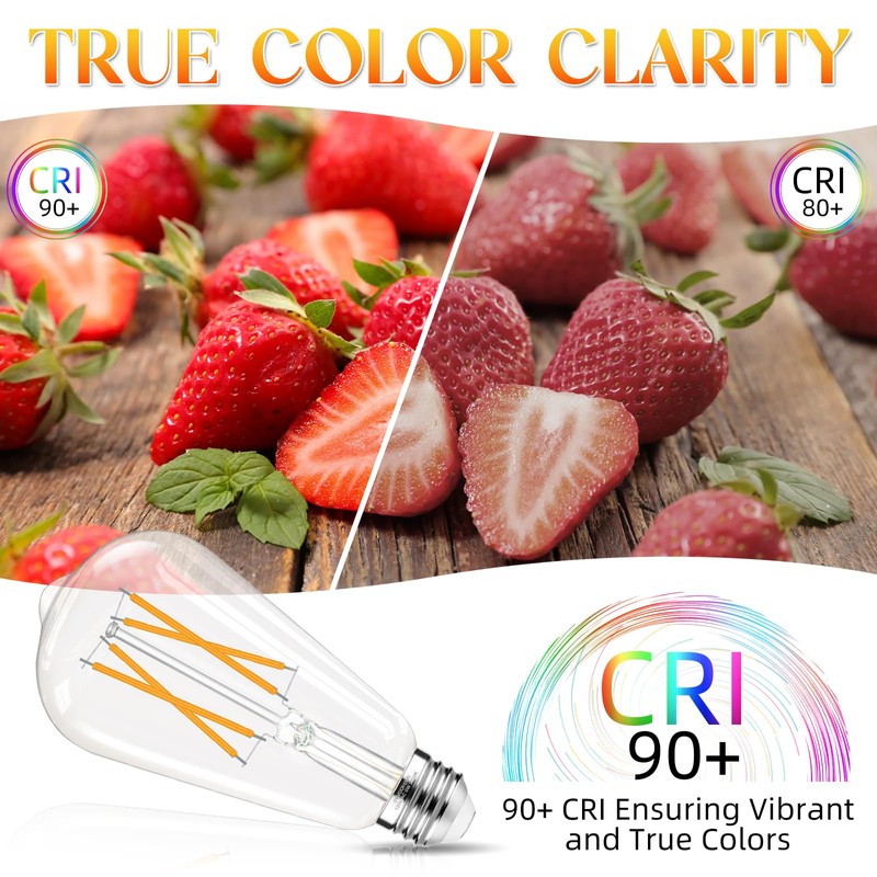 - Vivid Color Accuracy: Featuring a CRI of 90, these Edison bulbs offer exceptional color accuracy, bringing out rich, natural hues. The 360 beam angle ensures even lighting, reducing shadows and illuminating large areas effectively.